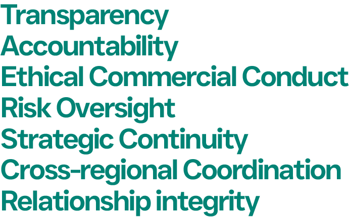 ZFC Global Commodities operates under structured corporate governance principles designed to ensure disciplined execution, long-term stability and responsible international trade operations across multiple jurisdictions.